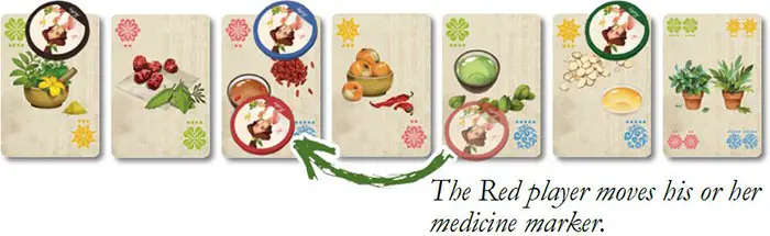 The active player moves his or her medicine marker onto any medicine card on the table.