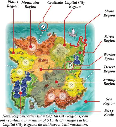 A Faction consists of a Capital City Board, a supply of Units, Hero Cards, several types of Constructs, and several Tokens: