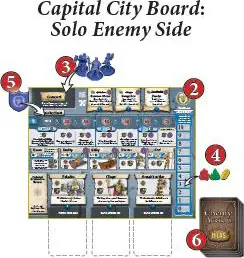 Capital City Track: The Enemy upgrades its entire Capital City by advancing an Action Token on a 6-space track, which marks its Capital City Level. The Enemy MUST pay the Ore amount listed on the next open space.