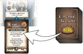 Draw the topmost Solo Enemy Card and assign it to the leftmost Hero Slot at the bottom of the Capital City Board. That action will be performed by that Hero.