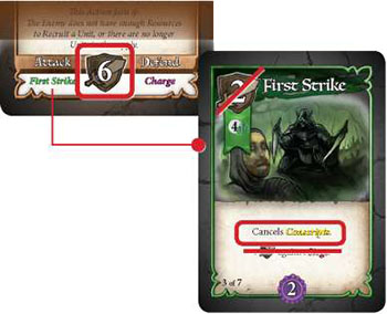 For example, if the Enemy's Tactic Card is First Strike, it would cancel your Tactic Card if you chose Conscripts.