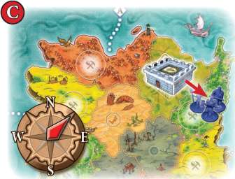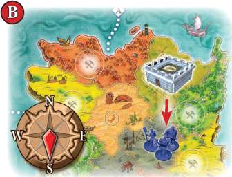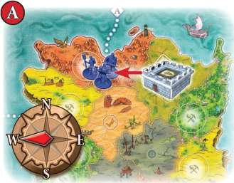 The Hero and all Units in its Region will move in the direction based on the compass on the Action Card (orient the compass to match the one in the top-left corner of the Game Board).