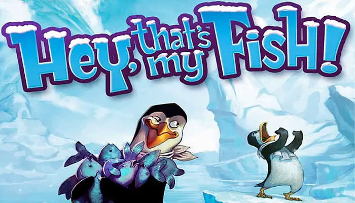 In Hey, That's My Fish!, players want to catch as many fish as possible with their waddle of penguins. Each turn, a player moves one penguin in a straight line over hex-shaped ice tiles with 1, 2 or 3 fish on them.