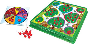 The object of the game is to be the first player to pick 10 cherries from his tree and fill his bucket.