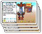 The game preparation is the same as with the basic game. Players sort the building cards by type and price and place them aside. Each player takes a summary card.