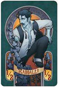 Four cards in the status deck have a dark green background - the three prestige cards, and the Scandale card. As soon as the fourth one is revealed, the game ends immediately, with no bidding for the revealed card.