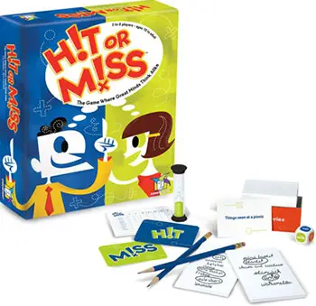 Quickly write down a list of items in a chosen category. Then roll the HIT or MISS die. If you roll a HIT, score points for picking an item on your list that you think other players also wrote.