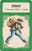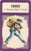 Each player who played a Thief card in the Castle may take one Collectibles card of their choice from the exhibit of each player. This is a tricky way to build your collection, in addition to acquiring Collectibles cards from the Auction Hall!