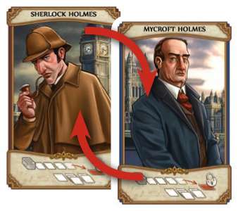 To increase the tactical difficulty of the game you can use the special, double-sided Sherlock & Mycroft card.
