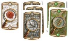 Example: Mycroft has 2 Cigarettes and 1 Bullet when he gets 1 Wildcard. He can associate it with any of his clues, but decides to put it aside. In a later turn he gets 1 Button and places it on top of the wildcard; now it is as if he had 2 Buttons.