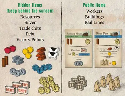 Set the Auction board, Resources, Workers, Silver, Trade, Debt, Rail Line, and Point chits within reach of all players.