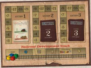 When a player passes in the auction, they advance their marker on the Railroad Development Track and immediately take the item corresponding to that space or any previous space on the track.