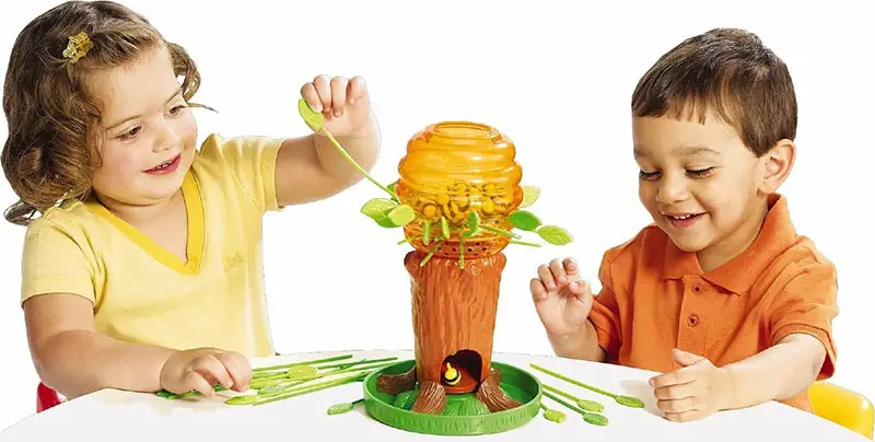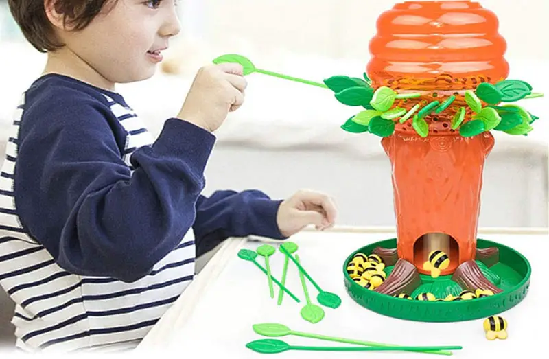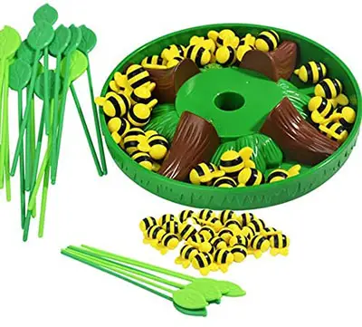 As the leaves are removed, Honey Bees will begin to fall through, into the Flower Trays. The player with the least amount of Honey Bees in his/her Flower Tray when all the Bees have fallen is the winner!