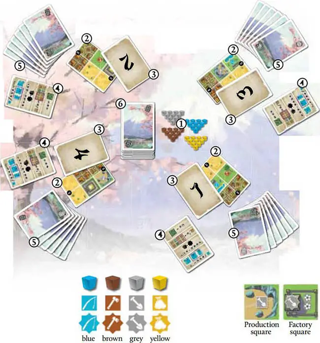 Decide which side of the Starting Province cards you're going to use, then deal one random Starting Province card 2to each player with the chosen side face up. Place a matching resource on each of the production squares found on the Starting Province cards. The Starting Province card is the first card in each player's respective map.