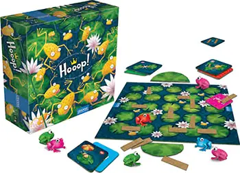 Players try to move their frogs from their own home leaf to the home leaves of the other players.