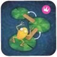 The player makes a jump with the red frog from his home to the adjacent leaf.