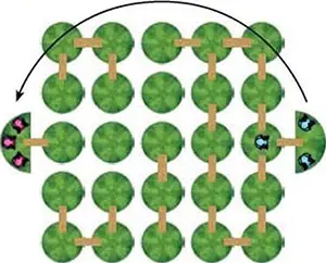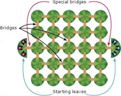 Instead of jumping, a player can put a bridge between two adjacent leaves that are not currently connected by a bridge. There can be only 1 bridge between 2 leaves.