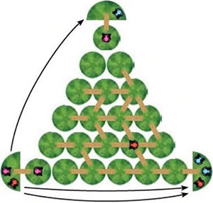 This makes jumps for other frogs harder. The player who moves all his frogs onto the home leaves of the other players wins.