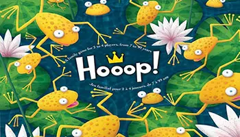 In Hooop!, players need to move their frogs to the opposing player's lilypads, with the first player to do so winning the game. These frogs don't jump wild and free, however, as they must take a bridge that spans adjacent lilypads in order to move.