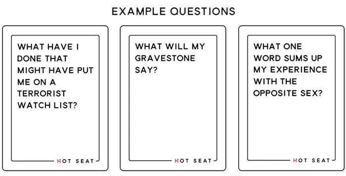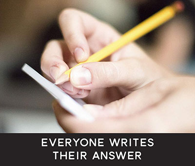 Everyone including the player in the Hot Seat writes an answer to the card in play on their answer pad from the perspective of the player in the Hot Seat.
