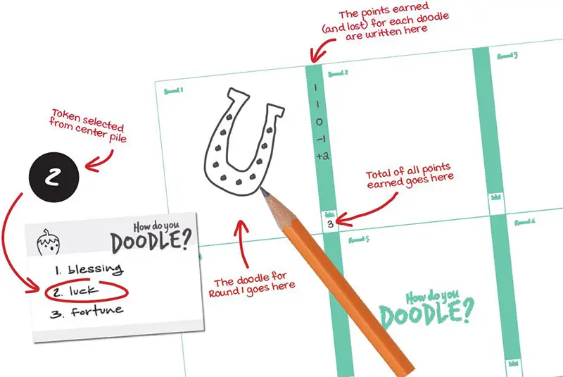 Helpful hint: players should do their best to keep their doodles inside the appropriate box on the Doodle Sheet. Yes, we know the area for each doodle is small - but it's the biggest pad we could fit inside the box!