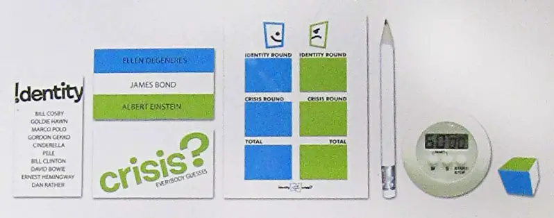 When a team member guesses correctly, the clue giver moves on to the next name card and play continues until the Timer runs out. If the Clue Giver can't get their team to identify the name, they must let the Timer run out OR they can shout "CRISIS!" which means the other team can guess!