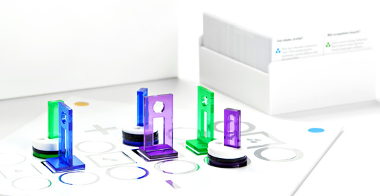Then again, if you think another player will get the question wrong, place your iBET token on their (-) side. If you yourself think you know the right answer, and your iKNOW token is on the level marked with three pips, other players may also use your answer - hence also winning chips for a correct answer.