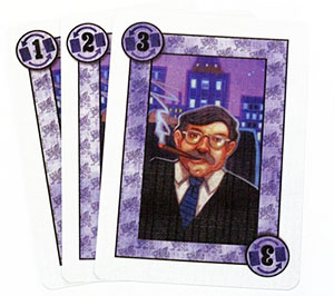 All the cards from the current deal are placed in the discard pile. The Boss token and the two Cousin tokens are passed to the player on the left. All players, simultaneously and sight unseen, discard either zero, one or two cards from their hands to the discard pile.