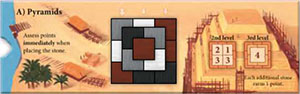 Once the pyramid is completely built, each additional stone delivered to the pyramid yields 1 point. Place these stones at the right edge of the pyramid board.