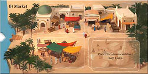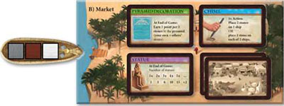 At the start of the round, place 2 cards face down on the card space at bottom right (instead of 1 face-up card). For a stone delivered to the market, you can pick up both cards and look at them. Then, select 1 card to keep. Place the other card on the discard pile.