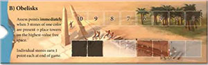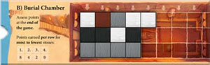 The B side works just like the A side, except for the following differences: At the end of the game, the players earn points for having the greatest number of stones in the 3 rows of the burial chamber.