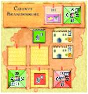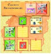 • The action card »knight« remains in the supply. Thus, no player can take the card. This card merely serves as a reminder to players that they can pay 1 thaler to place or move a knight.