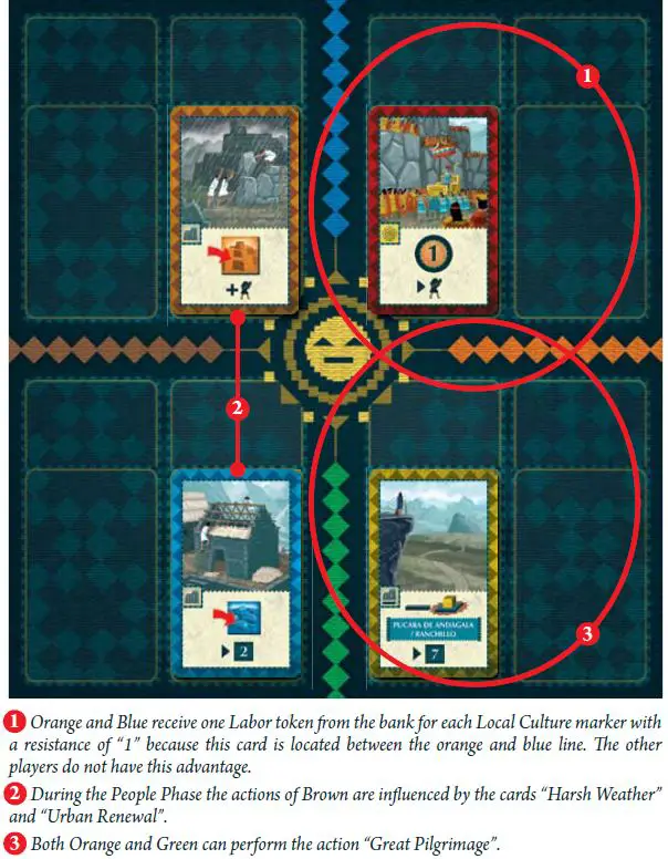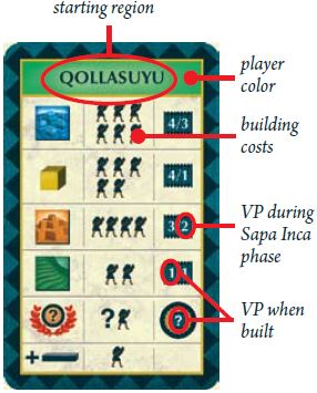 Important: Each terrace produces one additional Labor token during the Inca Phase and scores 1 VP during each Sapa Inca Phase for its controller.
