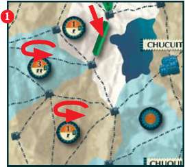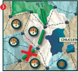 The player turns in four Labor tokens and places a Garrison marker on a Garrison site (orange) on the game board that is connected to his road system and borders at least one conquered region.