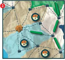 The player places one of his wooden sticks on a connection between two locations.