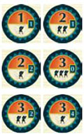 Shuffle the Turn Order tiles. Each player gets one tile face down. The players then turn their tiles face up and place the tiles clearly visible in front of them.