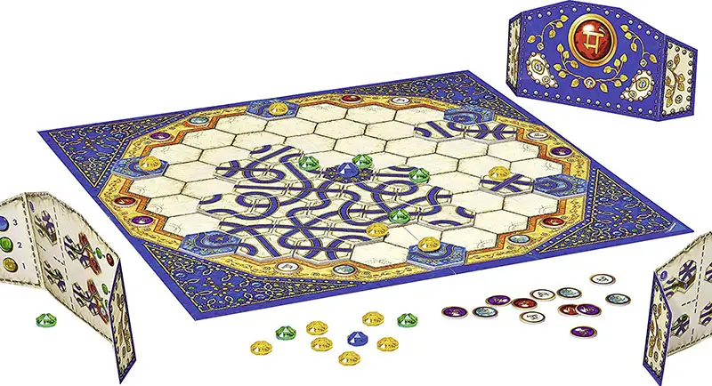 In order to gather the most precious gems, players lay pathways along which they move gems to the exits on the edge of the board. The exits either belong only to one player or are shared with another player.