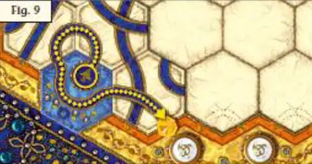 Once a gem is moved to the edge of the board, it is awarded to the player who owns that gateway (fig. 9).