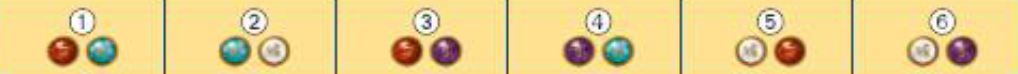 Cover the gateways in a clockwise direction as follows: red. turquoise, white, red, turquoise, white.