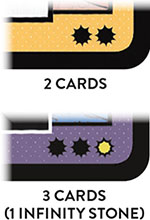 Players play cards representing heroes, villains, and the Infinity Stones to battle for the fate of the universe. There are 2 teams: Thanos is a team of 1, and all other players are on the other team.