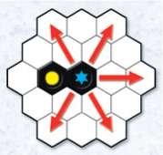 In each line count the number of identical symbols (printed on the board or on other tiles), but stop counting as soon as you come to an empty space or a different symbol. (Do not count the symbol on the tile you just played!)