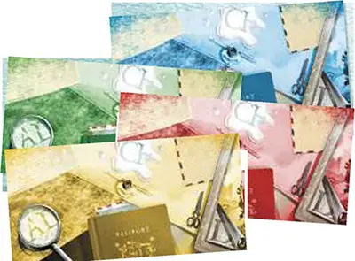 These special screens allow the players to keep all their information secret during the investigation: their cards and the note sheet with the info gathered during the game. They also show the missions that the players must achieve in order to win.