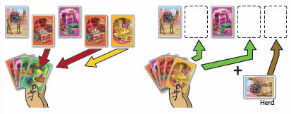 The players then remove any camels from their hands and put them face up in a in a stack in front of them. This forms each player's herd.