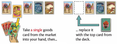 Take all the goods cards that you want into your hand (they can be of different types), then ...