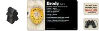 Brody: Take the Beach Closed Token and the Binoculars Token. Place the Brody Mover (black) at the Amity P.D. (space 6).