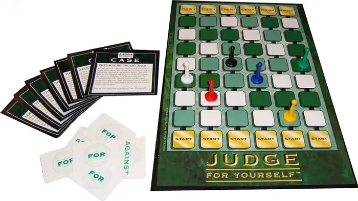 Be the first player/team to fill in the last box on your side of the scoring track by correctly solving the Judge for Yourself cases.