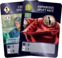 Some cards produce varying VPS or income for certain icons or card types in your empire. Duplicate cards do this multiple times. Some cards produce VPS for certain icons or card types in your empire and in one other player's empire of your choice (see right).