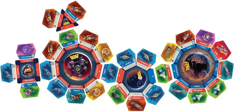 Deimos: MarsTech warp gates make travel more flexible! When you launch/move from cities on Mars, Phobos, or Deimos, you may adjust distances by +1 or -1. Your ship and junk must still travel an equal distance.