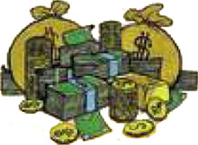 The deck of Development Aid consists of 96 banknotes of 1, 2, and 3 million Pesos, which are placed on the space marked on the game board.
