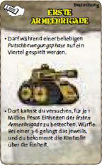 Bribes enable the control of Units or hinder an assassination. In order to play these cards, one needs cash in hand.